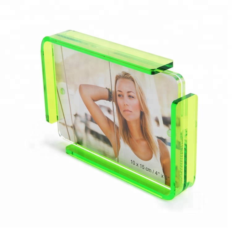 8MM Acrylic Thickness Neon Green Color Edge Double Sided Magnet Glass Photo Frame